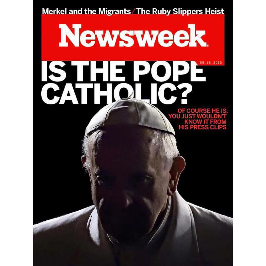 On some level it was fascinating watching as spokespersons, commentators, pundits, politicians adding to the confusion in the days that followed.  Some parsing the Pope’s words (and actions) for their own set narratives.  Others expressed disappointment, anger, even outrage.  Very few seemed to be able to see past their own agendas and political stances.    They liked the Pope when he conformed to their ideas.  When he seemed to be on their side or with those they felt allegiance to.  But in the views of the extremists on each side the Pope made the unforgivable sin of meeting with who they considered the enemy.   This was just one example (and the one that seemed to get the most attention most likely because of how Kim Davis has become a polarizing figure in a very divisive debate) But look at other issues that the Pope raised and it was the same thing- Abortion; Death Penalty; care for the environment; care for the immigrants – and there was similar anger from different corners of the political/societal worlds.  He was called a socialist, a communist, a Marxist, a leftist all because of his concerns about the Poor, and the immigrant.  Newsweek even had a deliberately provocative cover where in large letters it asked “Is Pope Francis Catholic?” obviouslly picking up on this theme: