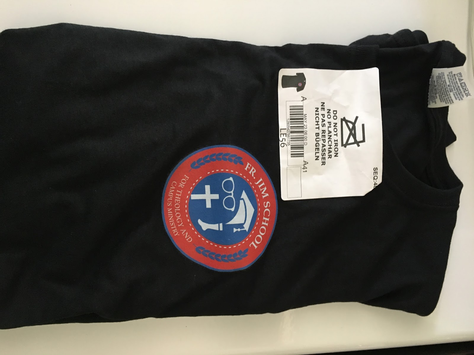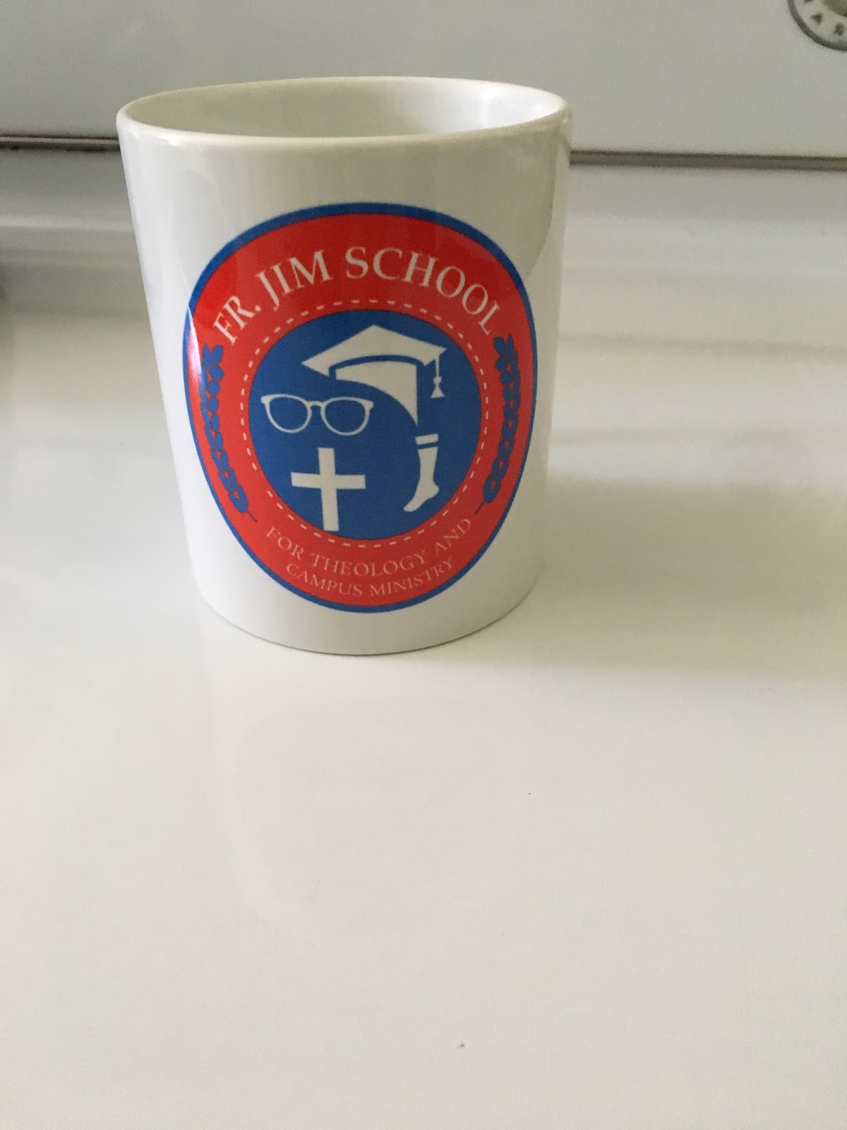 I can’t tell you how much all of this support means… When a few weeks ago, on The Catholic Guy Show, the #NastyMuppet producer decided to make a “commercial” that basically mocked me – (you can hear it here: https://soundcloud.com/siriusxm-news-issues/fr-jim-school-for-theology-and-campus-ministry ) I never imagined that it would turn into something that the listeners would get this involved in first making a “logo” for the imaginary school, [which included on the crest, fortunately a Cross and a graduates cap but also a pair of glasses (poking fun at my new “dumb” glasses that I have succumbed to wearing in middle age) as well as a sock, recalling the times I foolishly forgot Lino would insist I de-shoe upon entering his rat-infested apartment for the show and was found to have holes in my socks on three separate occasions]