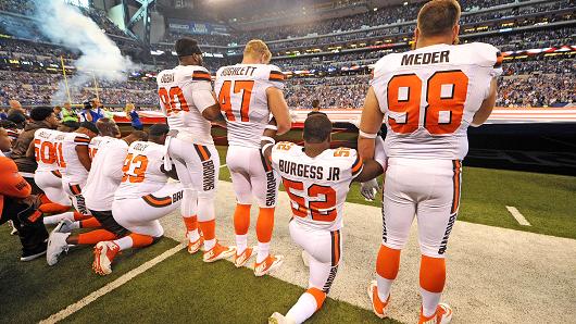 One athlete’s decision about a year ago to take a knee (rather than the traditional standing at attention) during the playing of the national anthem before a football game as a protest of what he felt were wrongdoings against African- Americans and minorities in the United States – has now evolved into a national debate. Teams and players are being forced to take sides, make their opinions known on different positions on even more controversial issues that have popped up… which seems to embroil people into even more passionate arguments. The focus on the games themselves seem to be an afterthought as people tune in to see “will they or won’t they” stand. And if they don’t – what will they do? Will they not take the field like the Pittsburg Steelers last week? Will they lock arms as a sign of unity? Will they kneel before the anthem and then stand?
