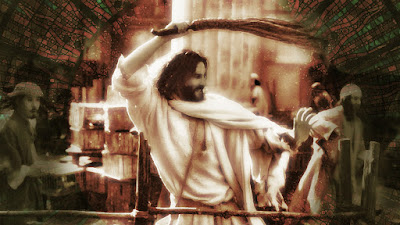 Jesus is fired up because His Fathers House – the temple was being misused. It wasn’t uncommon in Jesus’ time for them to sell oxen, sheep and doves to pilgrims traveling to Jerusalem. Remember when Jesus was first presented in the temple by Mary and Joseph that they brought a pair of turtle doves/pigeons as an offering. So these shop keepers were convenient for your pilgrim on the run. They could just purchase those things there. But – they were overcharging. They were taking advantage of the people. The sellers, the money changers weren’t there trying to assist Jews in a sacred moment. They simply wanted to make money off of them. So Jesus sees how this whole thing has desecrated His Father’s House… the temple. That’s what gets him fired up and angry.